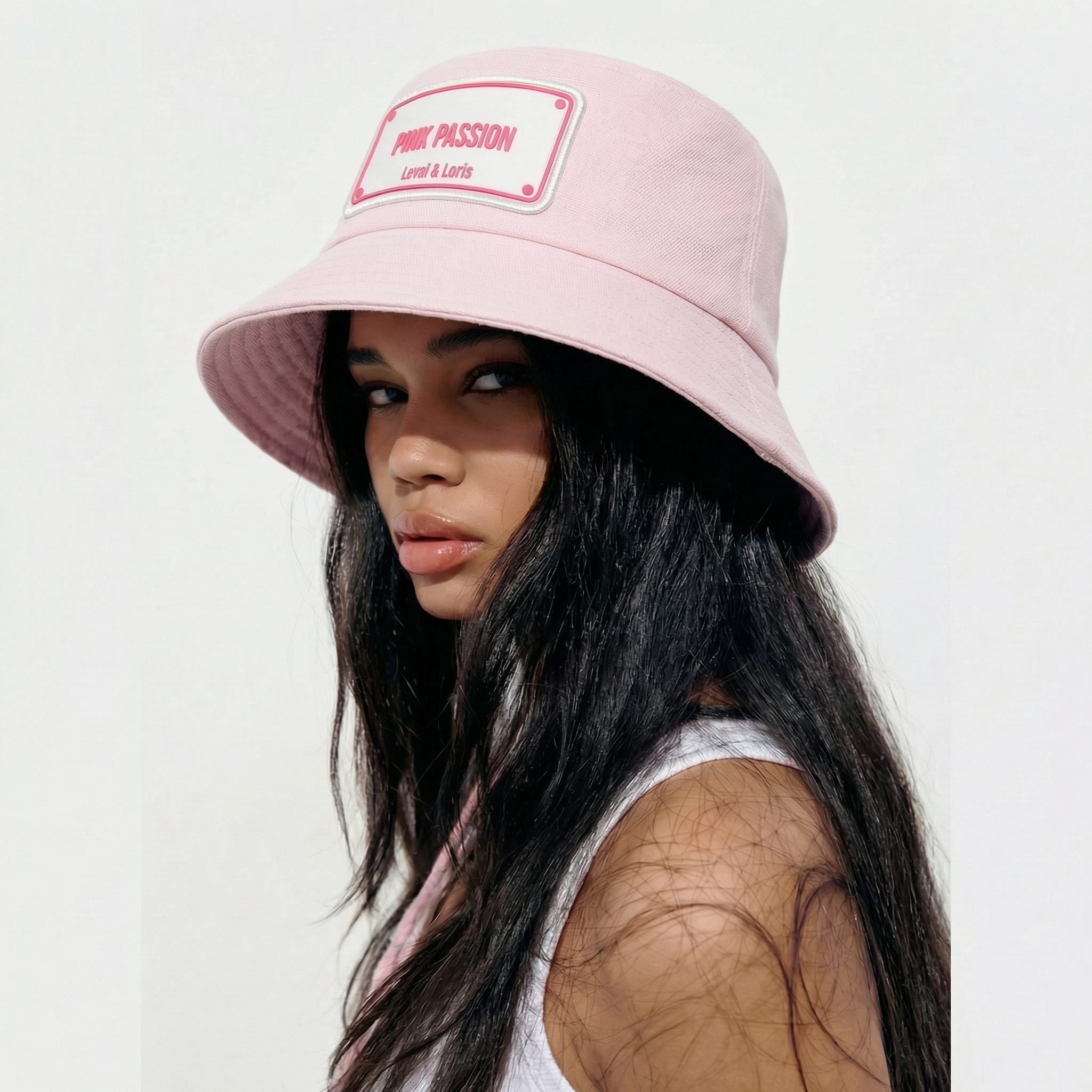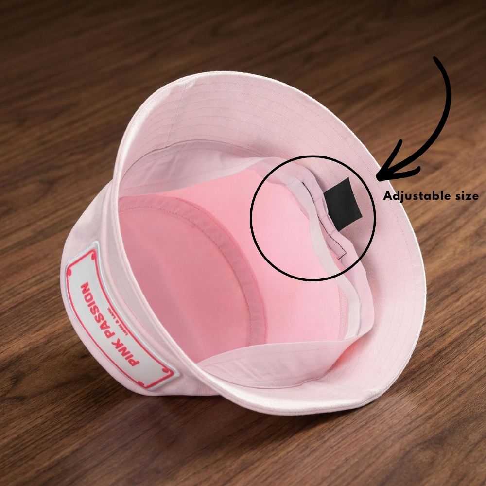 The PINK PASSION bucket hat is crafted from premium fabric that blends durability with a soft, comfortable feel.
